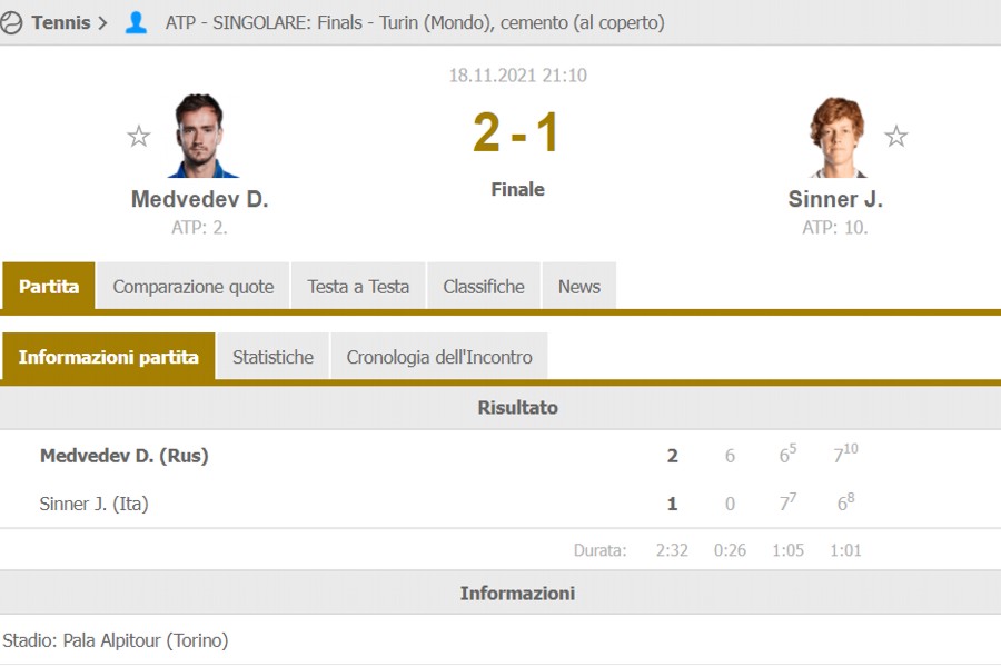 Né impresa né miracolo. Una clamorosa rimonta sfiorata con il numero due del mondo Daniil Medvedev consegna a Jannik Sinner la misura della distanza dall’Olimpo (poca) e chiude le Atp Finals