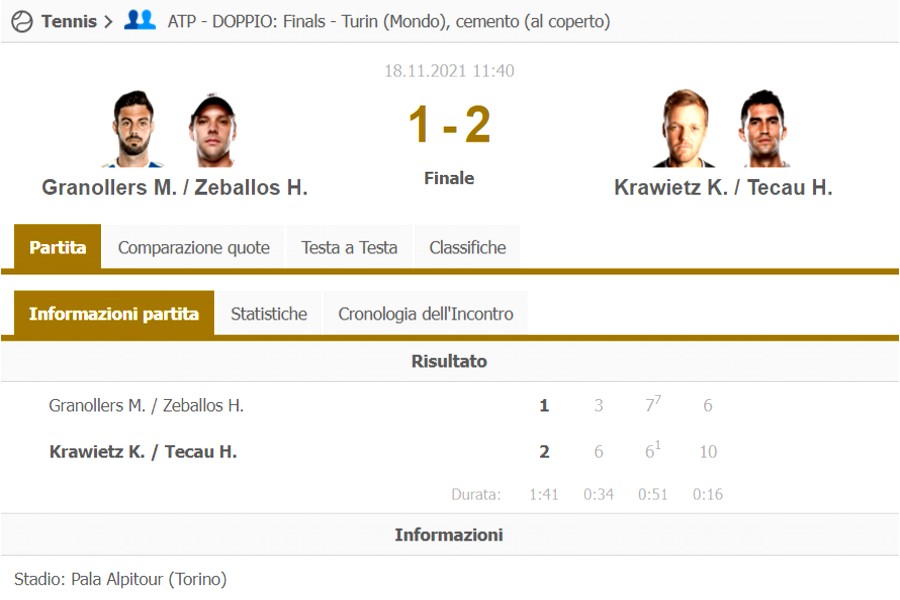 Granollers M. - Zeballos H. / Krawietz K.-Tecau H. : 1-2