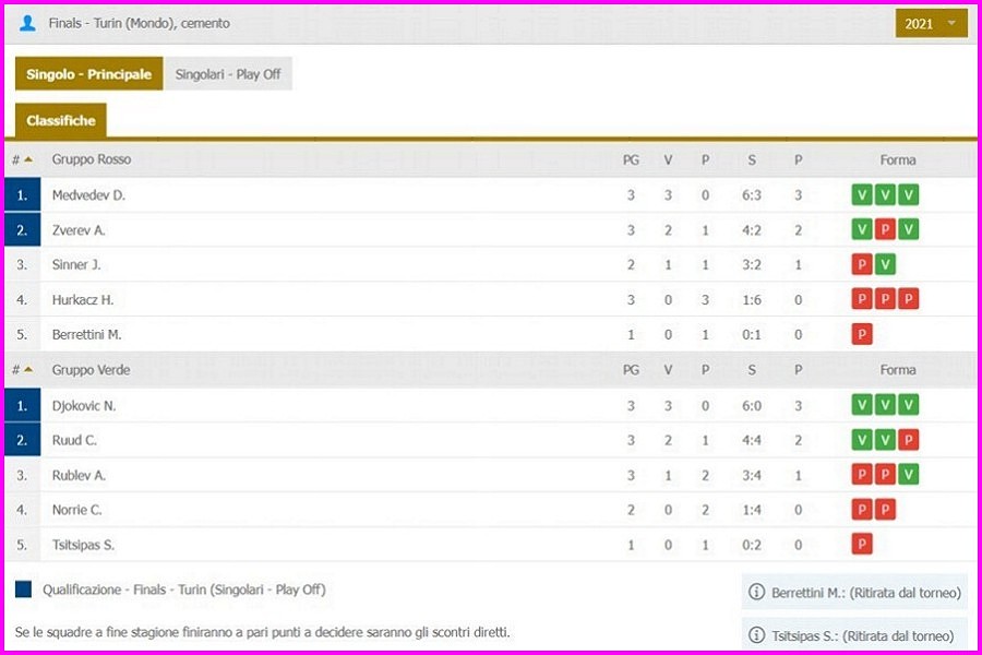 Atp Finals: chi partecipa, gironi, Sinner in panchina
