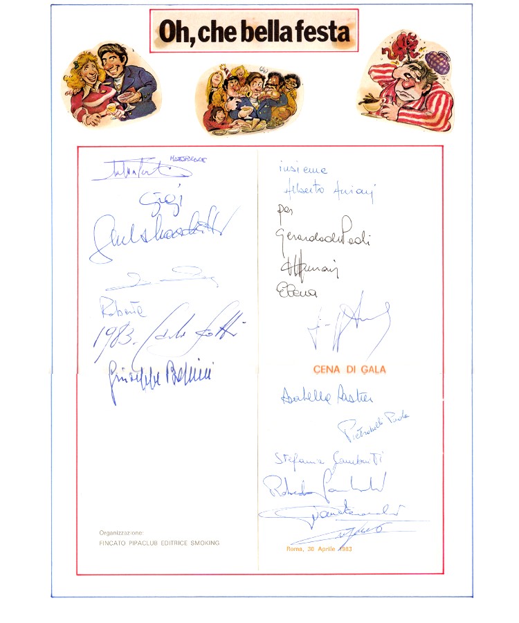 Foto 14/20 - Sul retro del menù le firme dei componenti e degli amici del Comitato Organizzatore.
