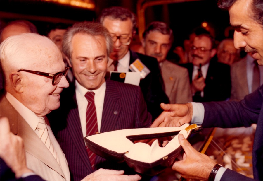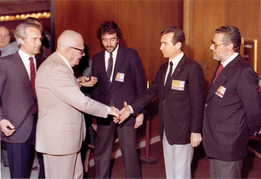 Foto 6/25 - Fausto Fincato presenta al Presidente Pertini i membri del Comitato Organizzatore. Nella foto il Presidente stringe la mano a Toni Di Rossi (io) insieme ad Alberto Acciari e Xxxxx Yyyyy.