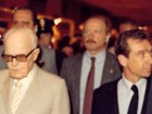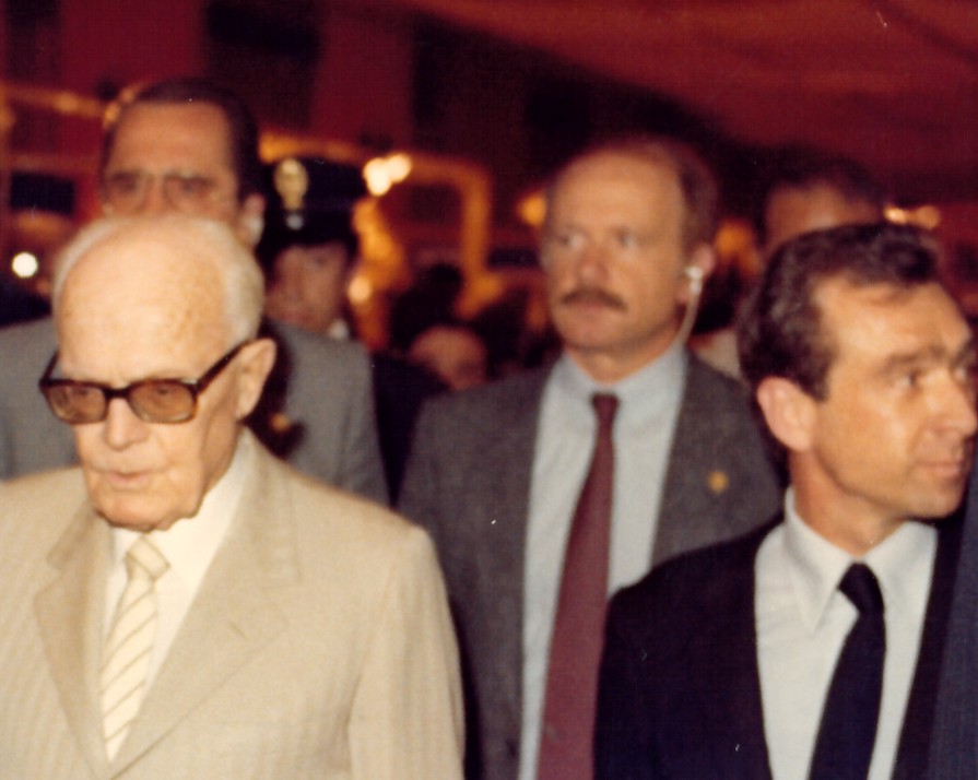Foto 20/25 - Fausto Fincato accompagna il Presidente, seguito dalla sua scorta, all'uscita dell'Hotel Hilton al termine della visita.