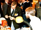 Foto 10/25 - Durante la sosta presso un altro stand Fausto Fincato mostra al Presidente una bella pipa di radica.