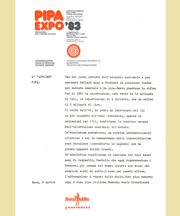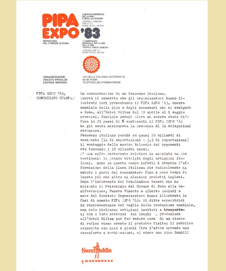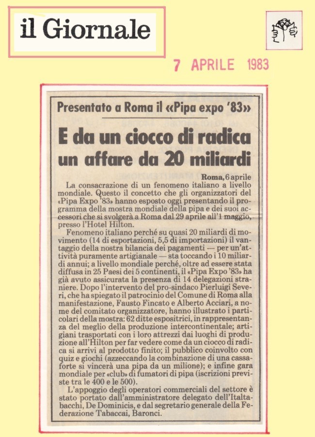 Foto 2/45 - 6 aprile 1983. Presentazione alla stampa della manifestazione Pipa Expo. Oltre al badge in dotazione ai componenti