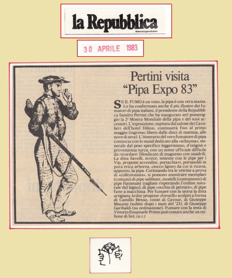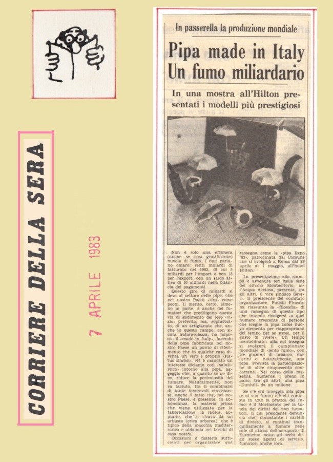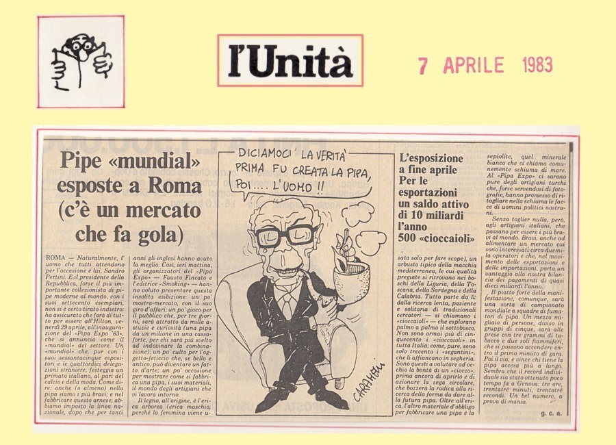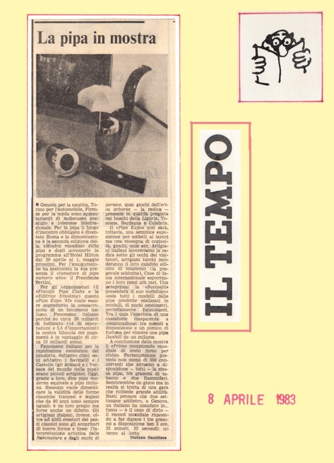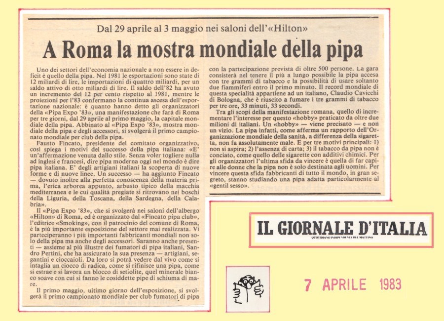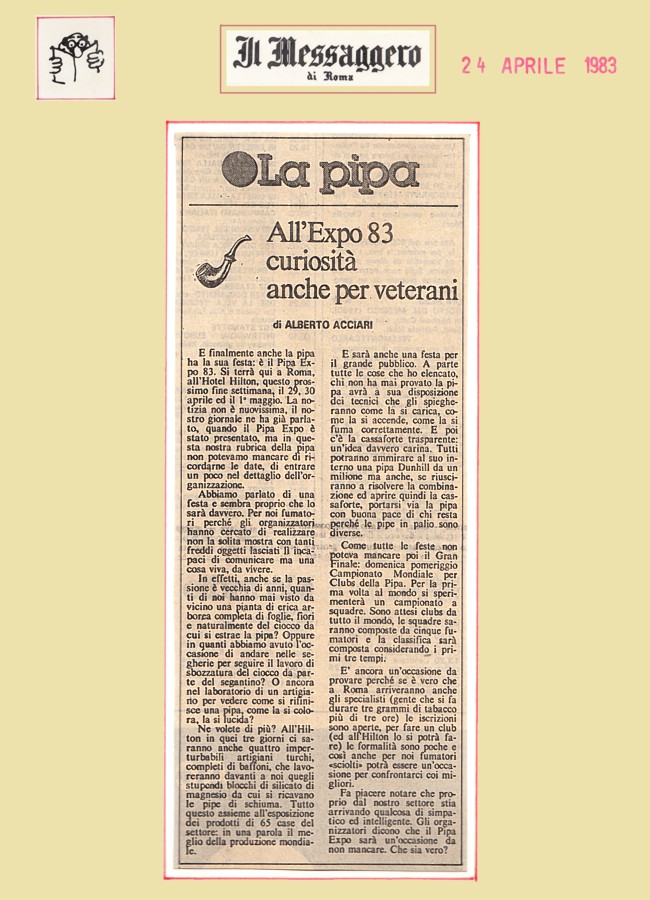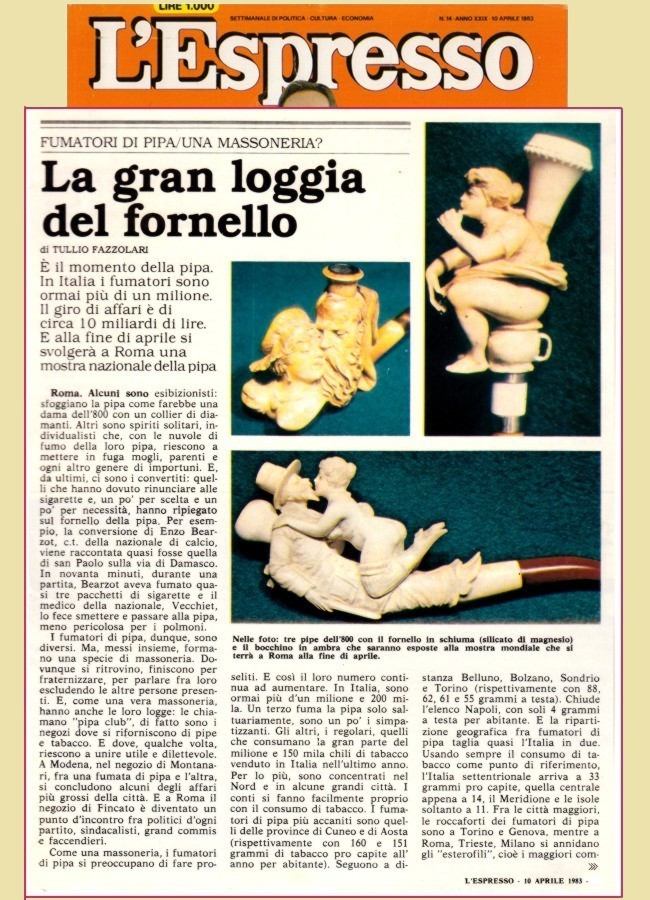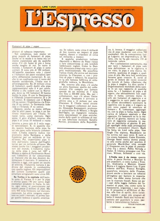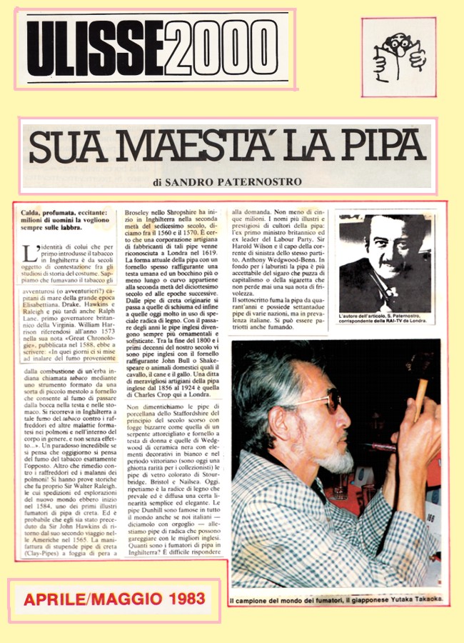 Alla fine di questa pagina ho inserito le fotocopie dell'articolo "La pipa e dintorni" che dopo alcuni mesi dall'evento fui invitato a scrivere per la rivista ECOS del Gruppo ENI.
