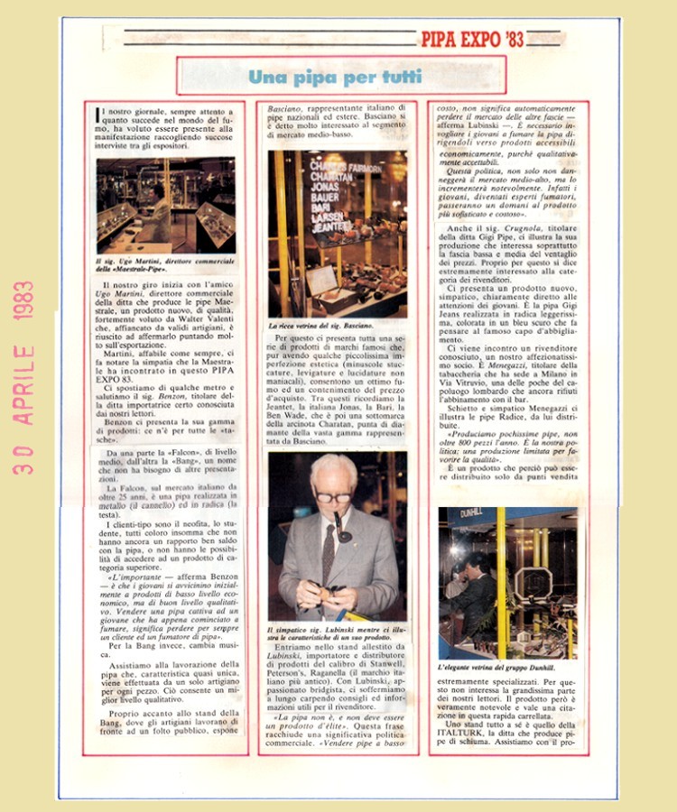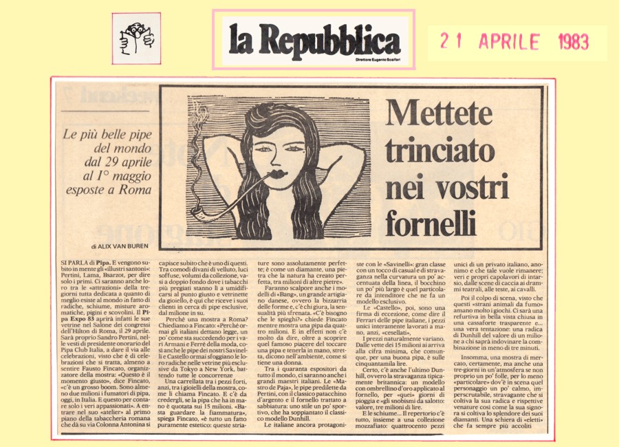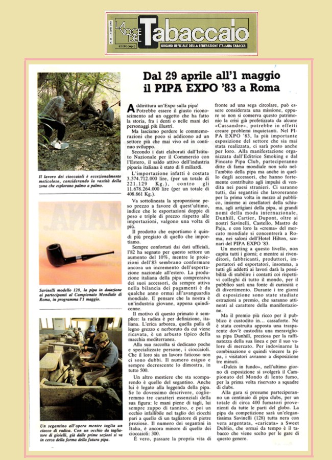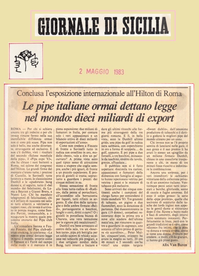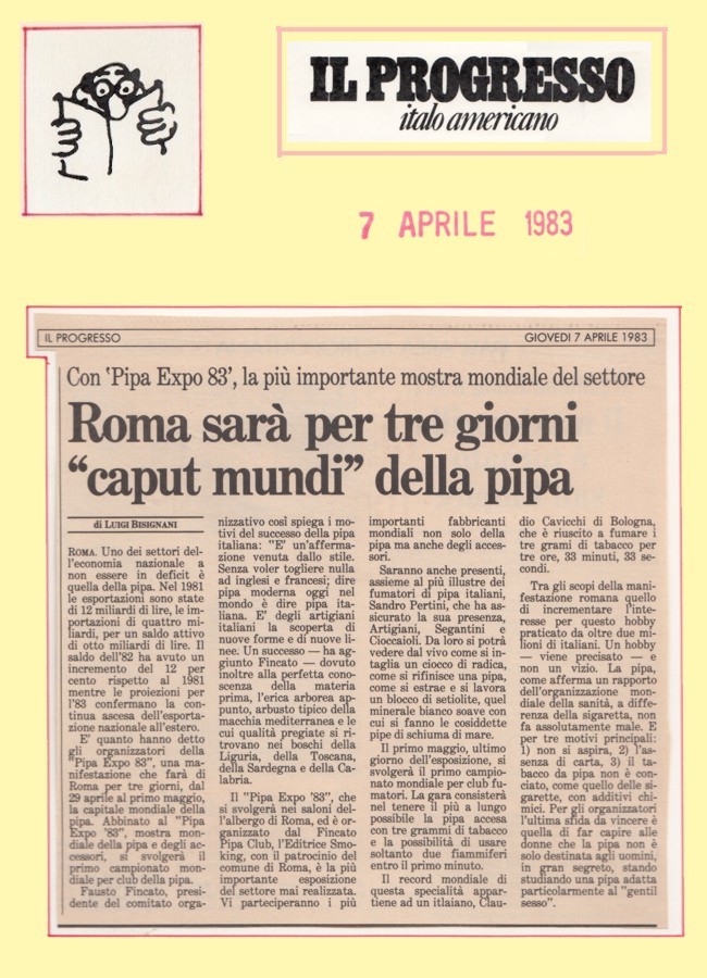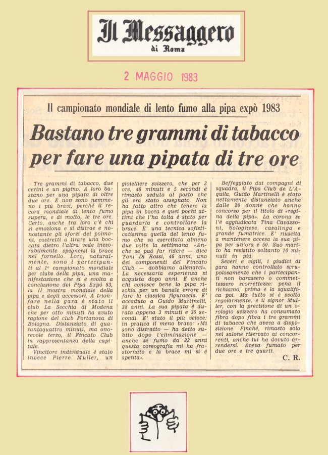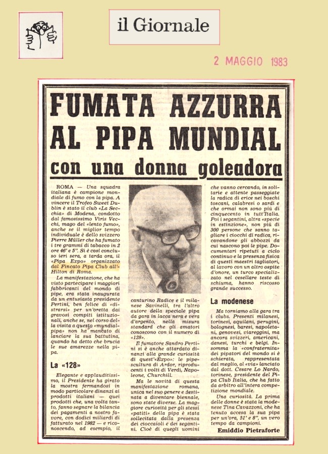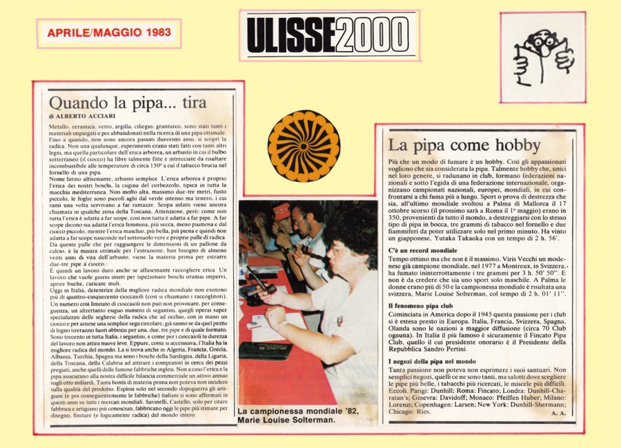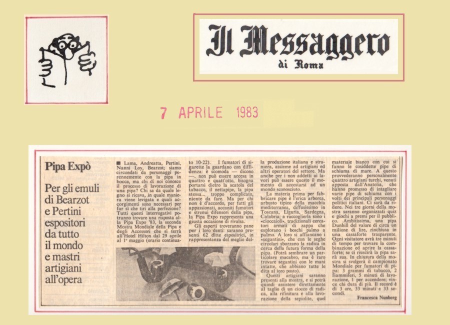 Alla fine di questa pagina ho inserito le fotocopie dell'articolo "La pipa e dintorni" che dopo alcuni mesi dall'evento fui invitato a scrivere per la rivista ECOS del Gruppo ENI.