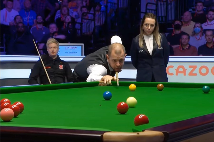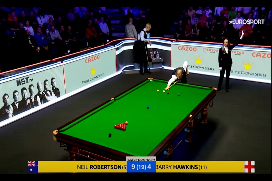 rossa di Hawkins ha dato il via al numero quattro al mondo, che è stato cinico nel chiudere con un mezzo centone tondo. Sul 6-3, il giocatore di Ditton ha reagito con una serie vincente da 69