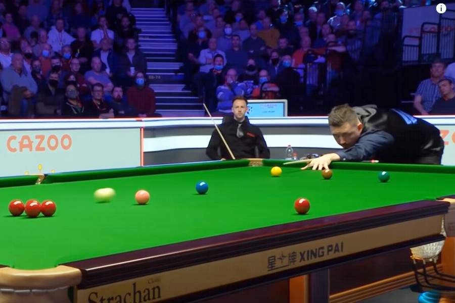 quattro rosse al tavolo. Dopo uno scambio difensivo, è stato Trump il più lesto ad imbucare dalla distanza, andando poi in ripulitura con un mezzo centone tondo per vincere il frame in steal.