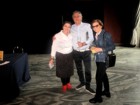 Nicoletta insieme a Daniele De Ventura e ad Alessio Ranaldi assiste all'intervista a Cristina Bowerman da parte