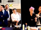 Cristina Bowerman, famosa chef "stellata" dalla Guida Michelin, mentre esegue alcuni dei suoi "piatti".