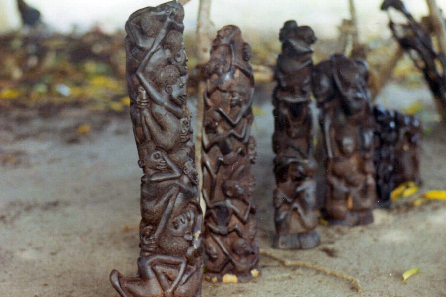 Foto 34/50 - Il gruppo degli intagliatori del legno che realizzano statuette di carattere etnico.