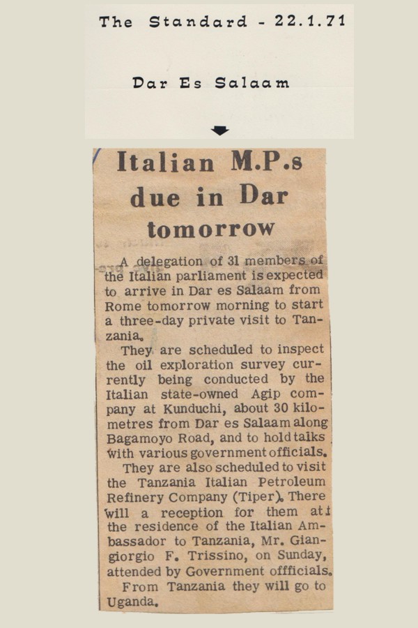 faranno a Kunduchi dove L'Agip Petroli sta effettuando delle perforazioni.