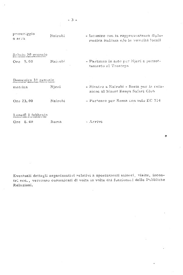 documenti inerenti alla fase organizzativa: ritagli di giornali locali e il programma nella sua stesura finale prima della partenza per l'East Africa.