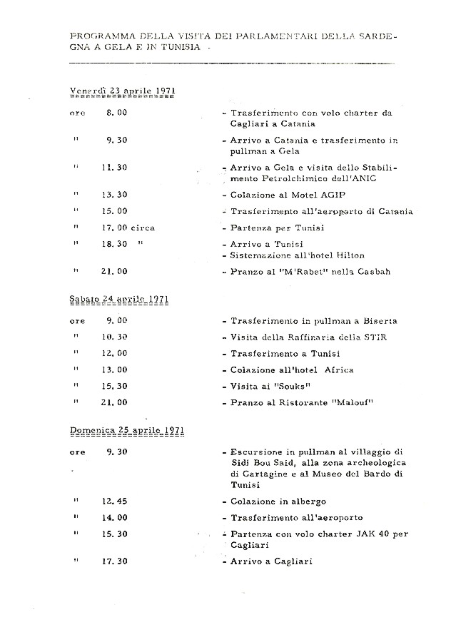 Il mio incontro con la delegazione parlamentare sarda avvenne all'aeroporto di Catania, pronti per partire per la Tunisia. La parte di viaggio