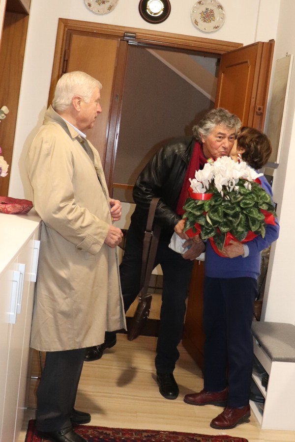 Patrizia ha omaggiato Fausta con uno stupendo vaso di ciclamini bianchi mentre Gabriella, che mi aveva avvertito, ha portato un dolce per il dessert che pare si chiami Mont Blanc anche se