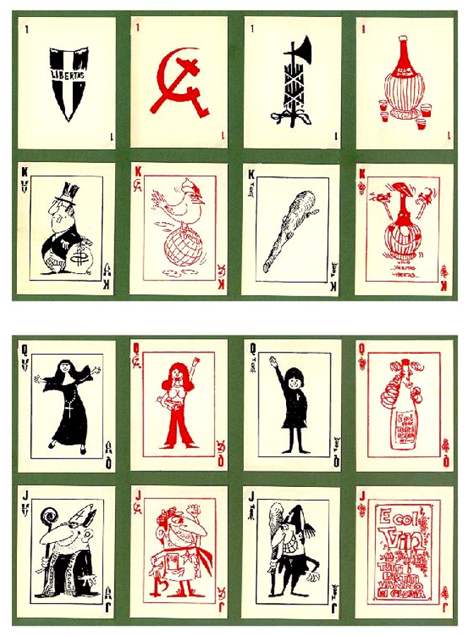 Mazzo Politico di 54 carte con figure caricaturali a sfondo satirico-politico (1976).
