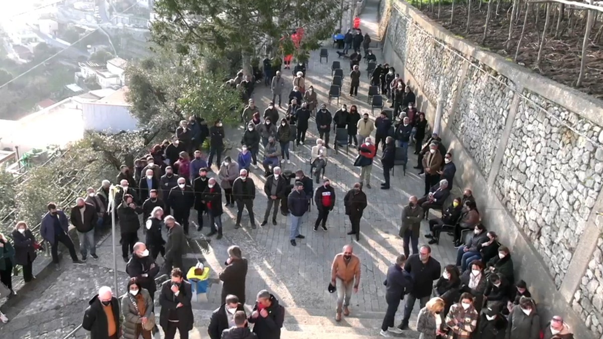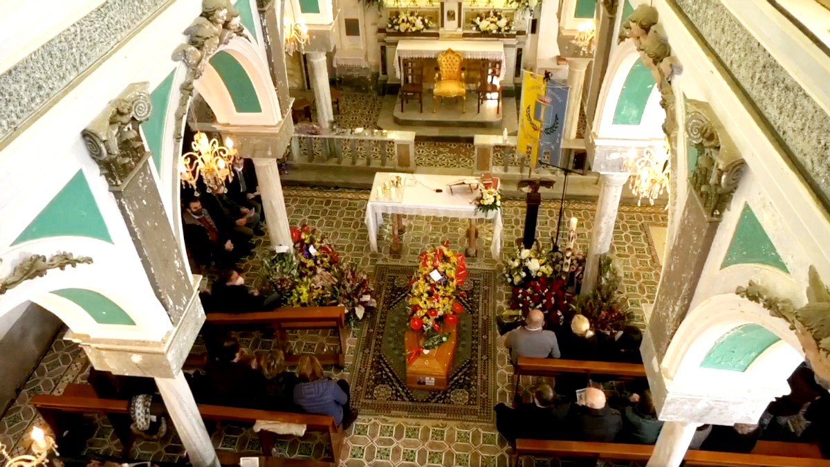 Il feretro di Raffaele Ferraioli adagiato sul pavimento della navata centrale della Chiesa di San Domenico a Furore.