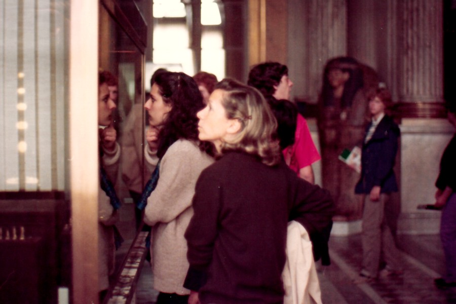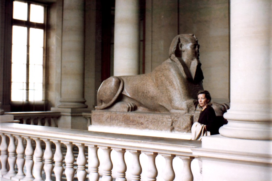 Al Louvre. Fausta sta ammirando la Gioconda di Leonardo. Ora è chiusa dentro una teca di vetro infrangibile ma nel '54, quando la vidi io, era aperta.