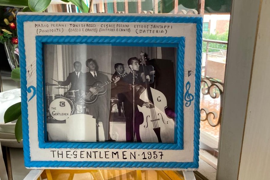 fatto una bella cornice per una foto che gli avevo mandato e che risale all'epoca del nostro complesso musicale che, in quel periodo, si chiamava ancora "The Gentlemen". Successivamente si