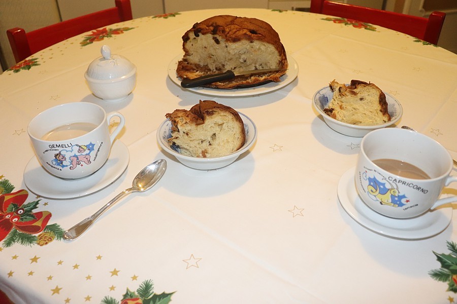 Il consueto scenario del 25 dicembre mattina quando si fa la prima colazione col panettone.