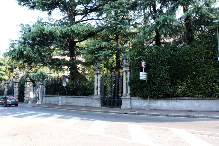 la proprietà è chiusa, l'unica cosa che sono stato in grado di fare è stata quella di fotografare da fuori dei due cancelli una porzione del parco e dell'ingresso dalla strada.