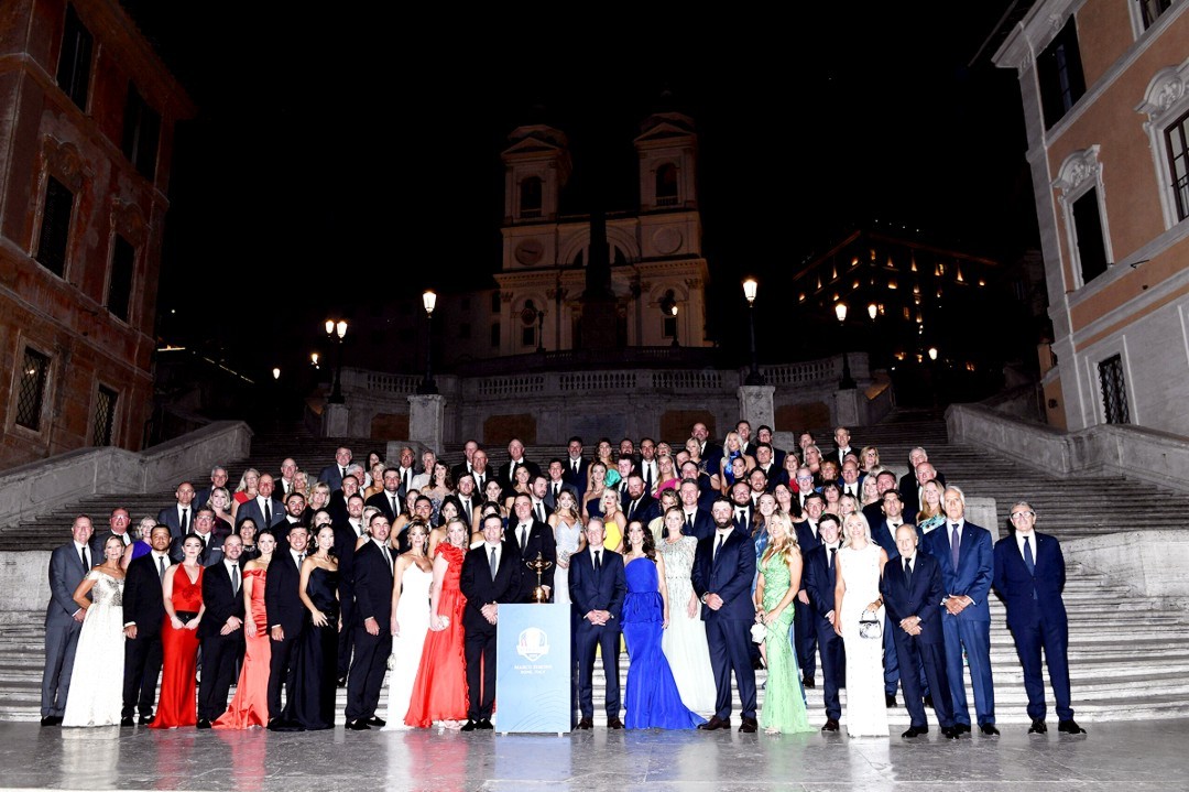 Tutti i partecipanti alla Ryder Cup 2023 con le rispettive mogli nella fotografia ricordo sulla scalinata di Trinità dei Monti.