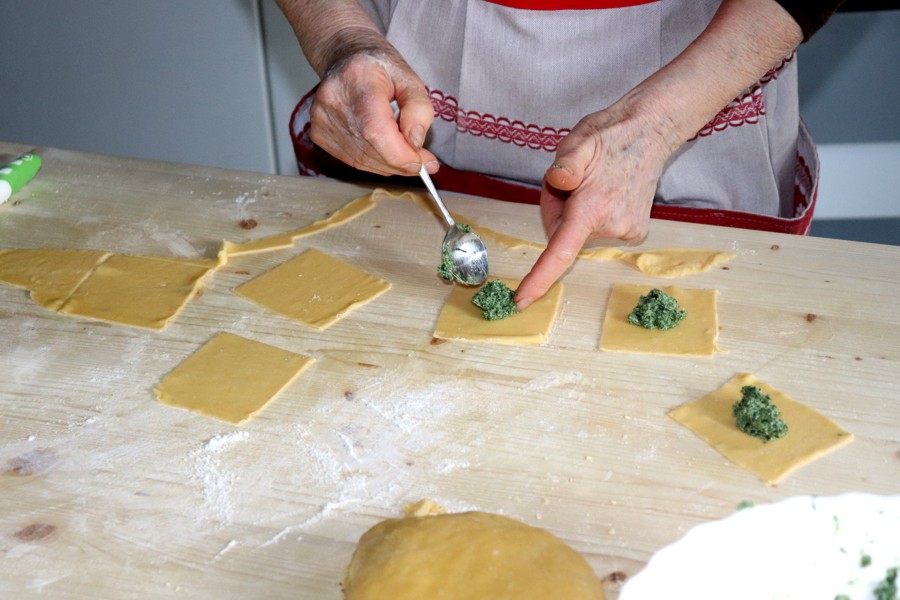 .. Chiudete la pasta a fagottino e sigillate i lembi con una lieve pressione delle dita, poi lasciate asciugare e nel frattempo preparate la salsa sgusciando le noci e liberando i gherigli dalla pellicola