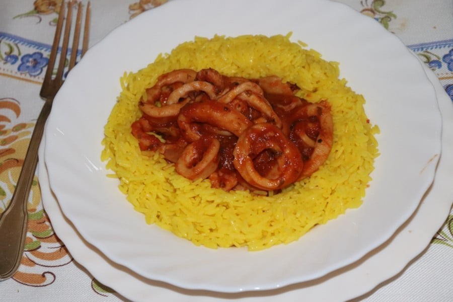 "Riso Pilaf allo Zafferano con Ragù di Calamari"