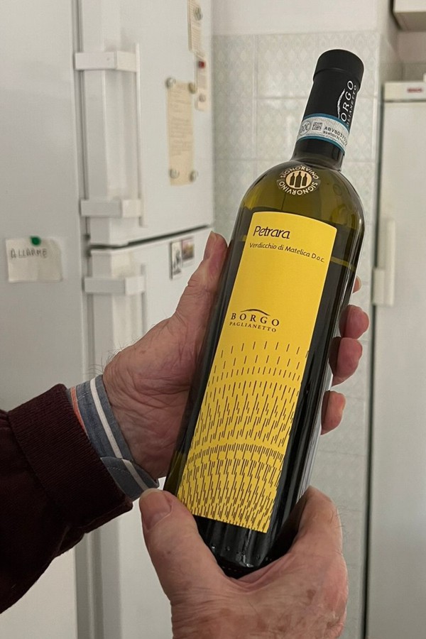 La bottiglia di Petrara, il Verdicchio di Matelica DOC che Stefania e Carlotta hanno regalato a me.