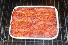 - Aggiungete la salsa e un pochino di acqua calda, quindi coprite con il coperchio e lasciate cuocere per circa 50 minuti mescolando di tanto in tanto.