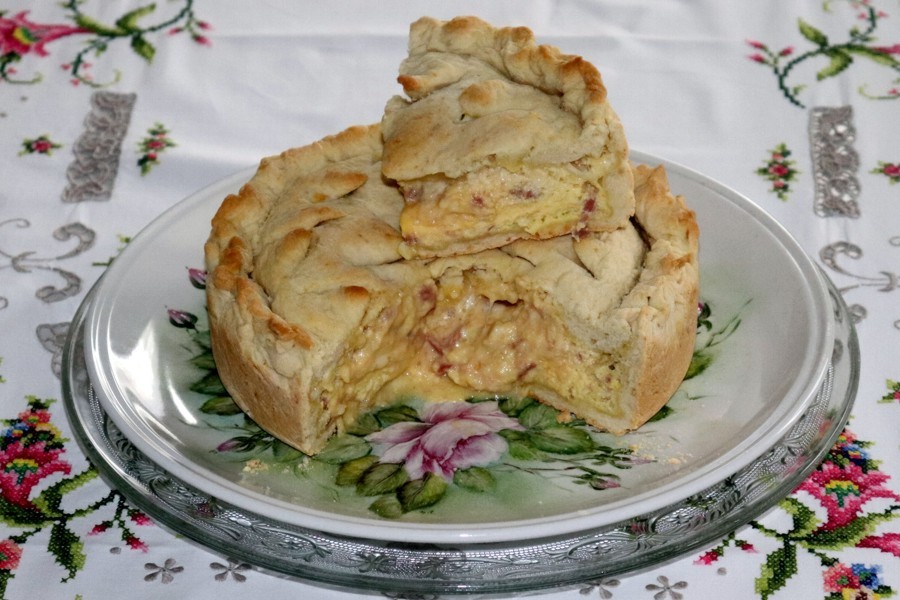 Questa torta rustica, anticamente, veniva farcita con tutti gli avanzi di formaggio della casa ai quali veniva aggiunta, per esaltarne il sapore, della salsiccia, se c'era, oppure qualche fetta di salame o di prosciutto.