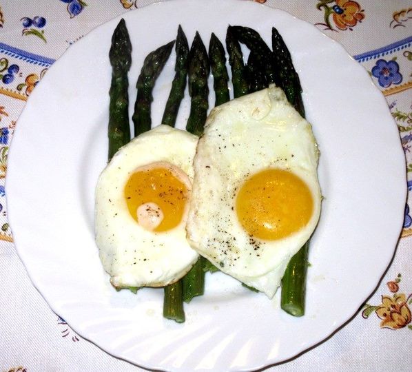 Questa è la stagione degli asparagi e cosa di meglio che unire un secondo piatto con un piatto di verdura? Per chi pensasse che mettere due uova sugli asparagi non sia poi una grande fatica vorrei ricordare che il fascino di questa vivanda