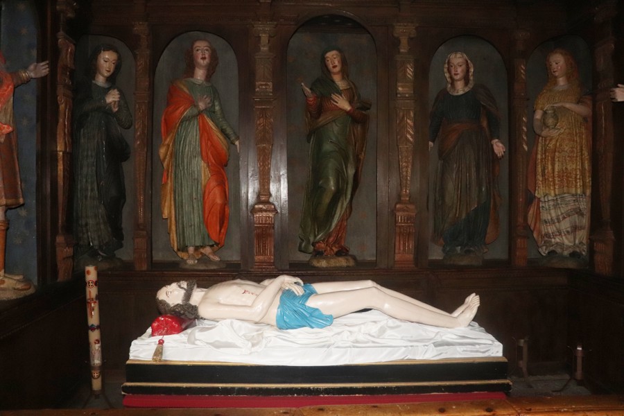 All’interno della cappella del Santo Sepolcro sono ben riconoscibili il Cristo (copia sostitutiva dell’originale andato disperso), la Madonna, San Giovanni Evangelista, Nicodemo, Giuseppe