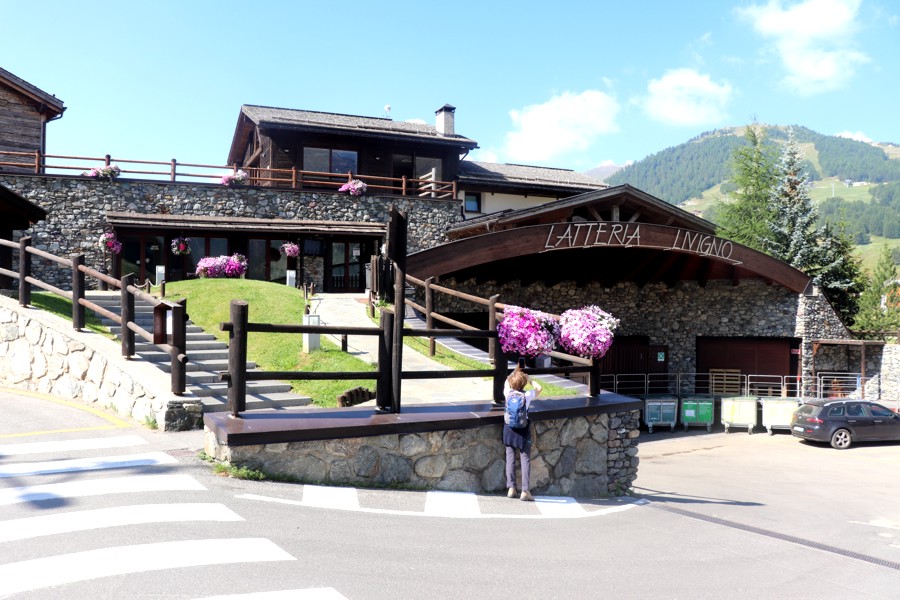 Siamo a livigno. Fausta fotografa la Latteria, purtroppo chiusa.