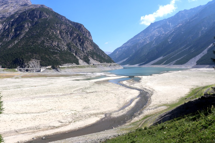 Il lago di Livigno anch'esso scarso d'acqua.
