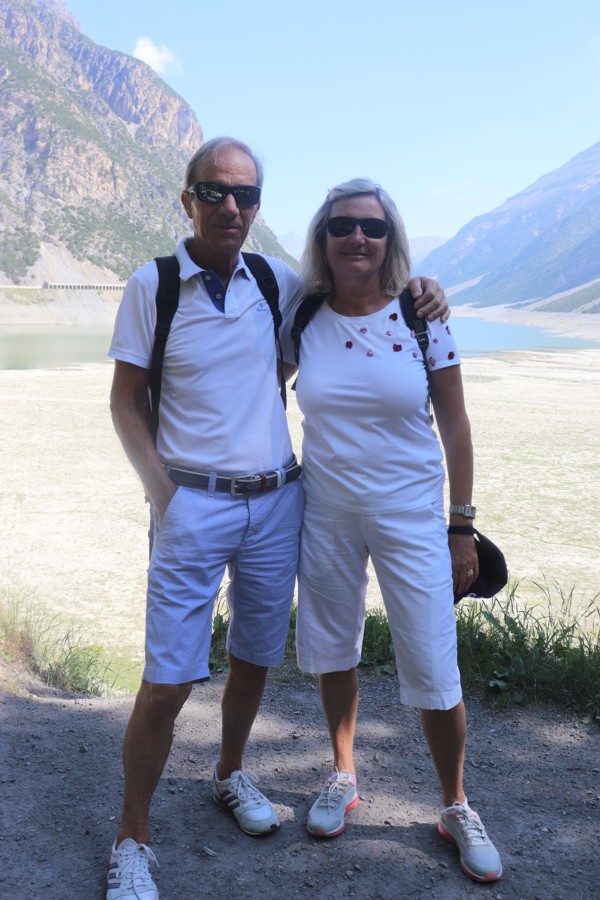 Carlo e Anna sullo sfondo del lago.