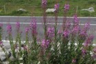 Una siepe di Epilobium Angustifolium ovvero Sanandrea divide la strada dall'area di parcheggio nella quale ci troviamo.