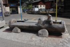 Una bella panchina rustica nel centro di Livigno.