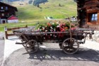 Un bel carro fiorito, elemento decorativo all'esterno di un negozio.