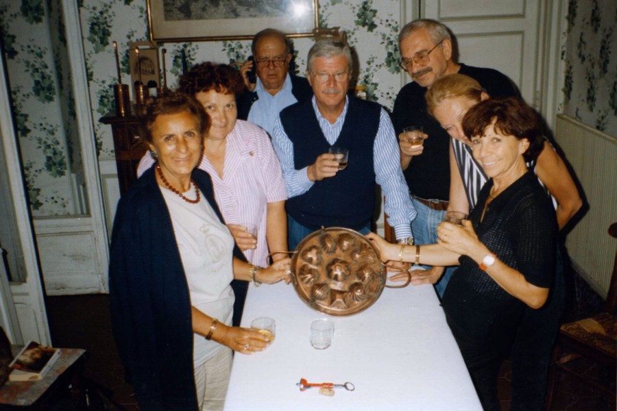 Foto 8/10 - La sera, a Villa Giacosa, uno stupendo stampo di rame per budini viene donato dal gruppo a Maria Pia e Guglielmo per ringraziarli della loro disponibilità "culinaria".