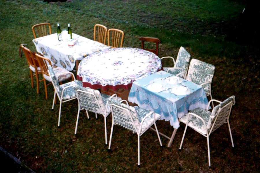 Foto 1/15 - 8 agosto 1998. La serata finale del nostro torneo di golf. Il faggio è ancora lì, sdraiato, ed è una presenza importante che farà da corona alla nostra cena.
