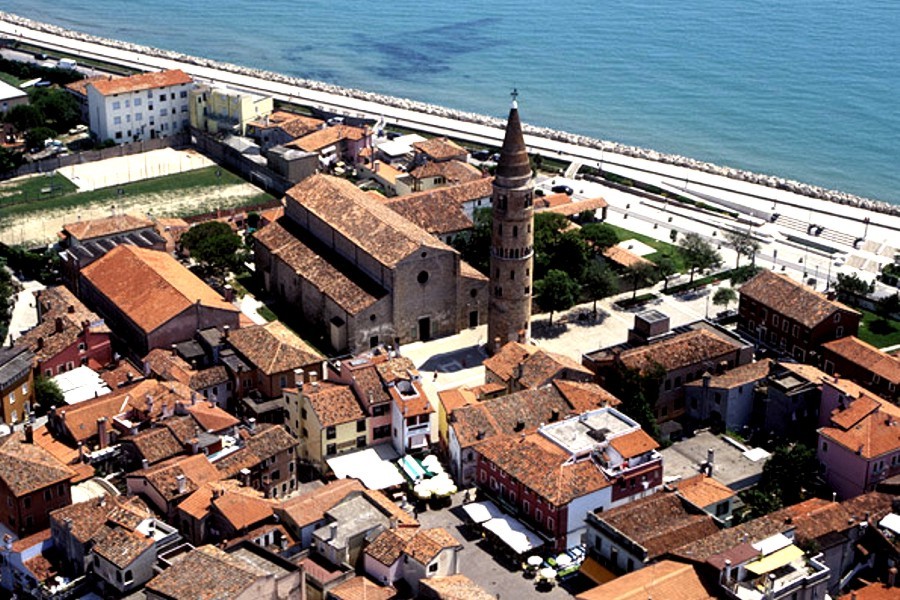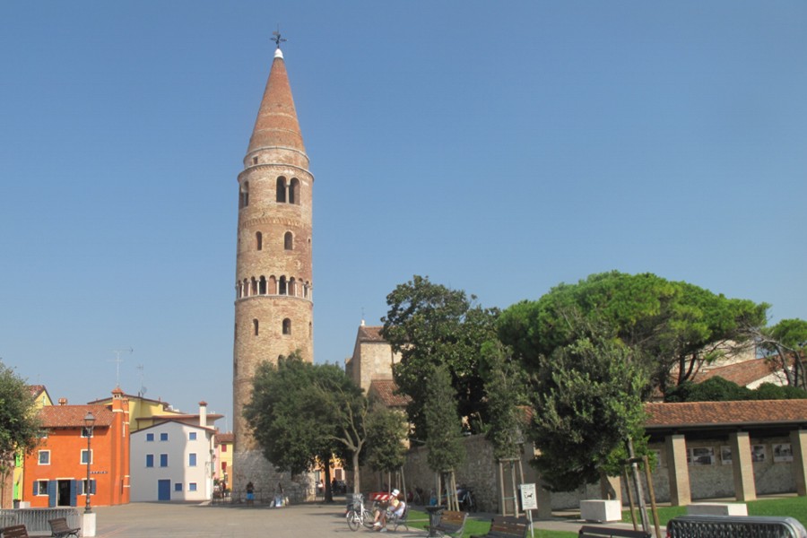 scappando all’invasione barbarica alla fine dell’Impero Romano. Davanti al Duomo, si afaccia il maestoso campanile di forma cilindrica, alto 44 metri e da secoli, simbolo di Caorle.