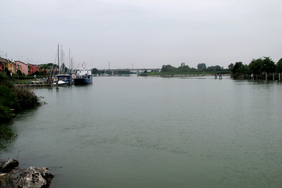 Foto 19/30 - Porto Santa Margherita. Sulla riva del Liven za. Sullo sfondo il traghetto che sta per attraccare.
