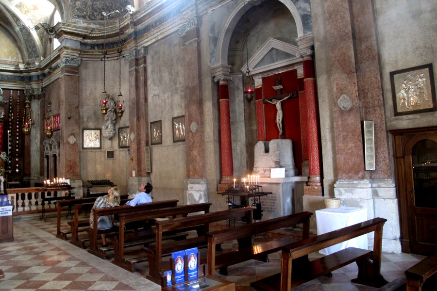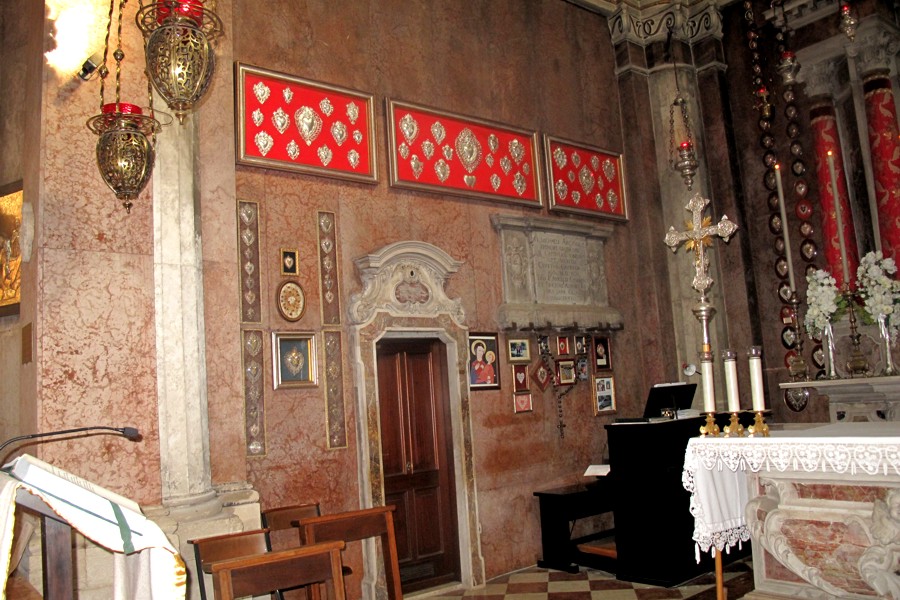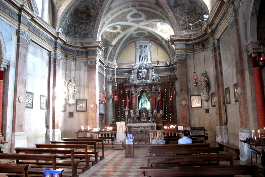 All’interno l’immagine della Madonnina dell’Angelo, protettrice dei pescatori, oltre ad affreschi e targhe che narrano