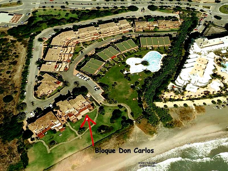 Rispetto al resto del complesso la nostra palazzina è, insieme alla sua gemella Don Juan, leggermente appartata e più vicino alla spiaggia la quale dista appena 50 metri dagli edifici con accesso diretto dal giardino.