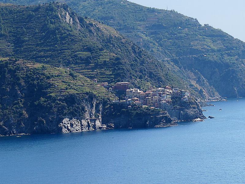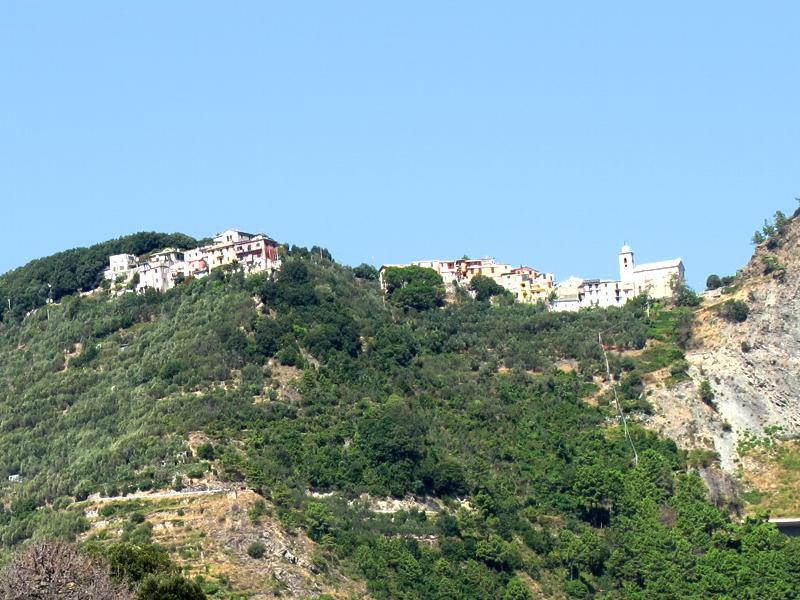 Si differenzia dagli altri paesi delle Cinque Terre in quanto è l'unico borgo che non si affaccia direttamente sul mare, ma si trova sulla cima di un promontorio alto circa cento metri, circondato da vigneti posti su caratteristici terrazzamenti a fasce, tranne sul lato che guarda verso il mare.