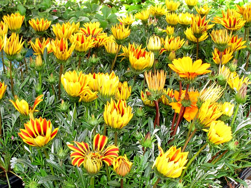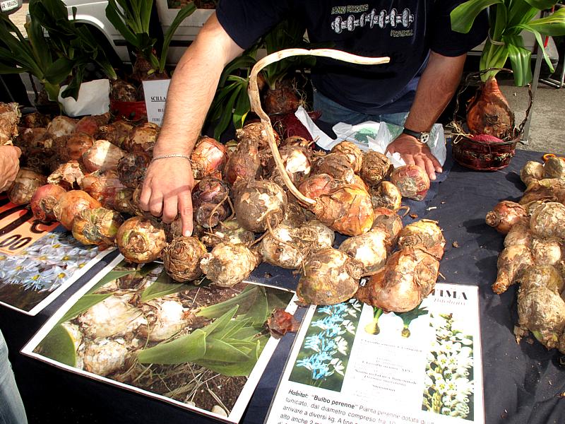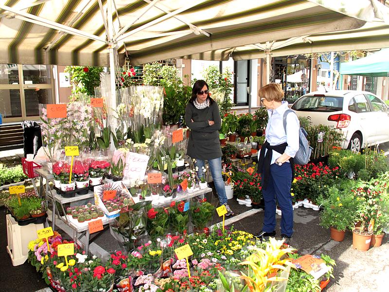 susseguirsi di bancarelle fiorite con espositori