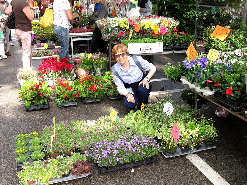 di fiori e piante, bancarelle di artigianato e