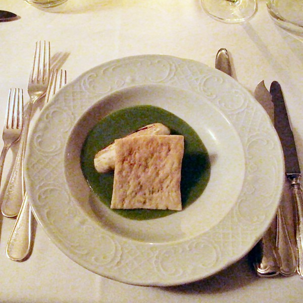 Foto 35/55 - Tortino gratinato su crema di piselli.