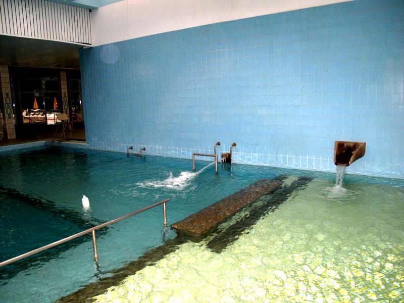 90% (se l'immersione è fino all'altezza delle spalle) al fine di affrontare i vari esercizi di riabilitazione con uno sforzo sensibilmente ridotto. Grazie a questa metodologia di lavoro si registrano ottimi risultati terapeutici in breve tempo. La specifica composizione chimica e la temperatura dell'acqua termale favoriscono una ripresa dolce e graduale dell'esercizio fisico. Percorso